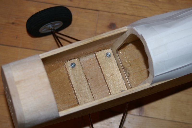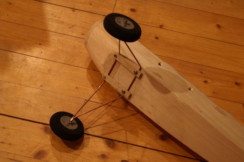 Wo das Fahrwerk am Boden anliegt habe ich innen und außen 1mm Sperrholz-Verstärkungen eingesetzt.