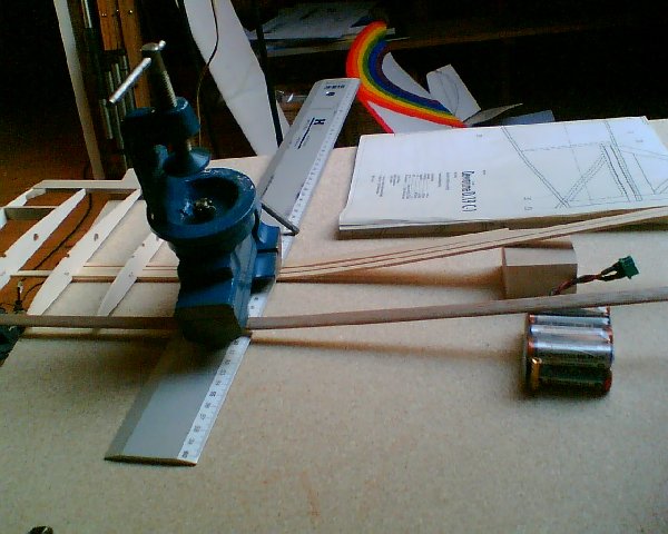 Dazu die Holme, den Hilfsholm und die Nasenleiste gebogen, um die V-Form zu erzielen.