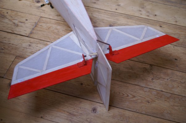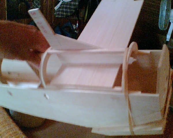 Rumpf - Heck: Den senkrechten Teil, an dem die Seitenwände zusammenlaufen, durch ein Stück Endleiste ersetzt. Dadurch läuft der Rumpf spitzer aus.
