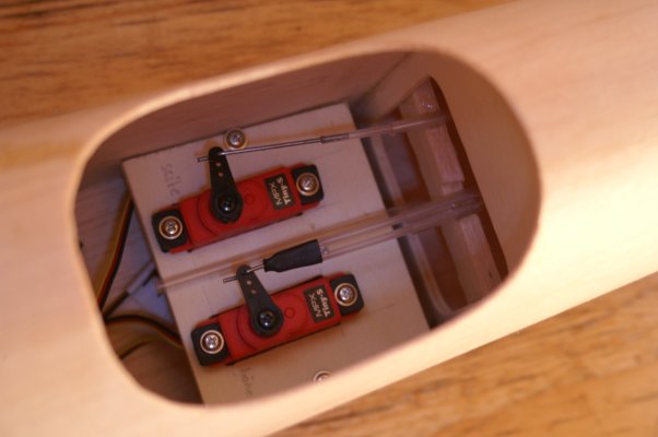 Servo-Befestigung: H+S-Servos von oben durch Cockpit zu warten, keine Wartungsklappe im Boden.