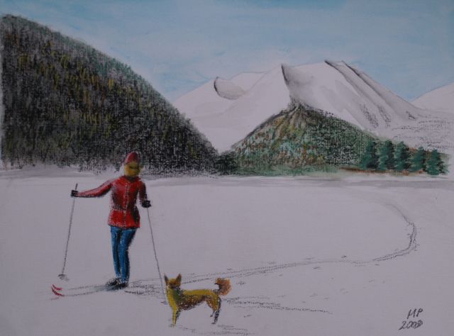 Erste Spur in frische Schnee (auf dem Etrachsee)
