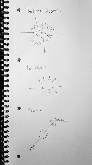 Wissenschaftler sind ja so gescheit, sie haben sündhaft teure Geräte, mit denen man alles messen kann, die können doch messen, wo das Elektron ist, in welche Richtung es sich dreht(*) usw. Dazu kommen wir später, siehe "Überlagerung".